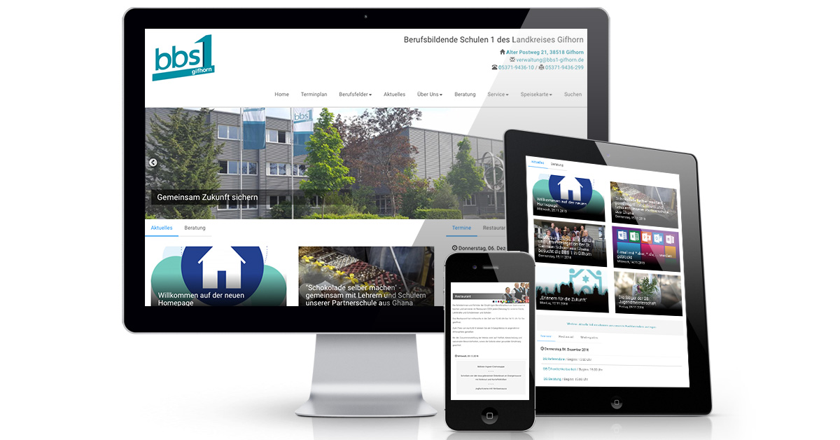 The website now centrally manages departments and courses of study, as well as all public contacts and department heads of the school. Forms, dates, newspaper articles, and blog articles are maintained by department heads and appear automatically in the appropriate places.