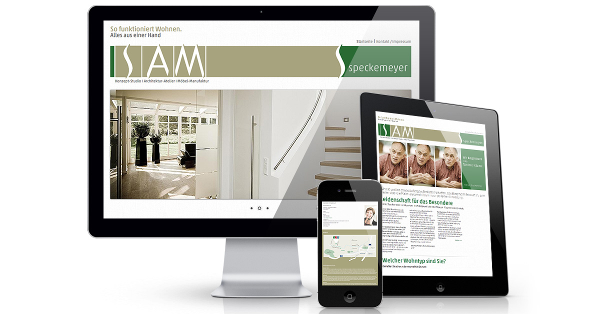 The company Speckemeyer specializes in interior design and furniture manufacturing. The challenge in this project was to unify the new Corporate Identity on a website.